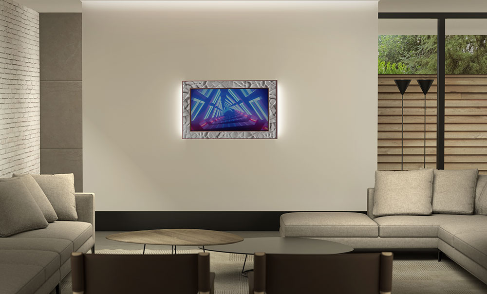 • L'illuminazione d'ambiente dimmerabile, completa il prodotto. Questa funzione è fruibile sia a TV accesa per una più confortevole visione al buio, sia a TV spenta per esaltare l'estetica dello specchio.