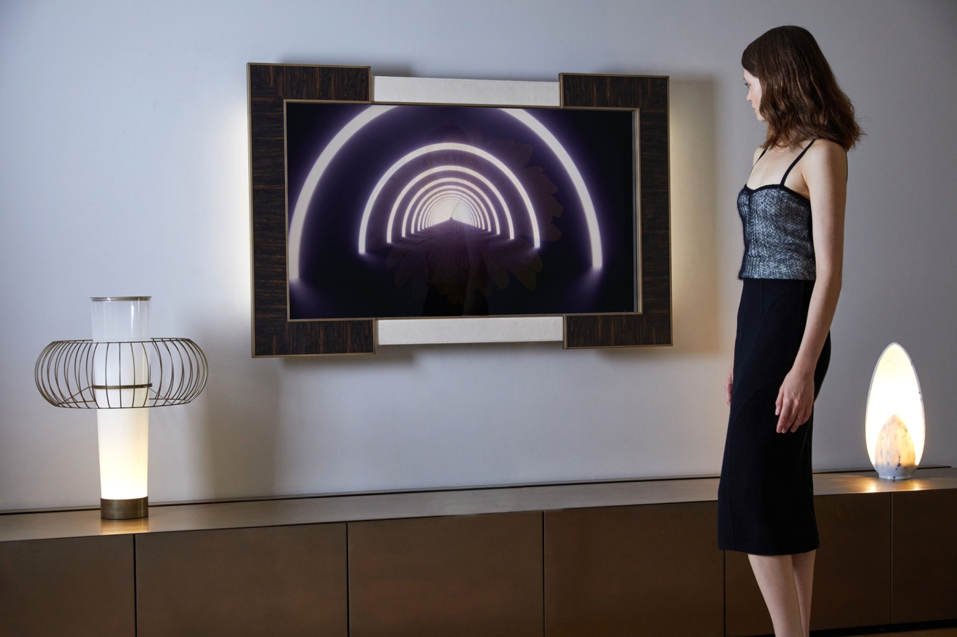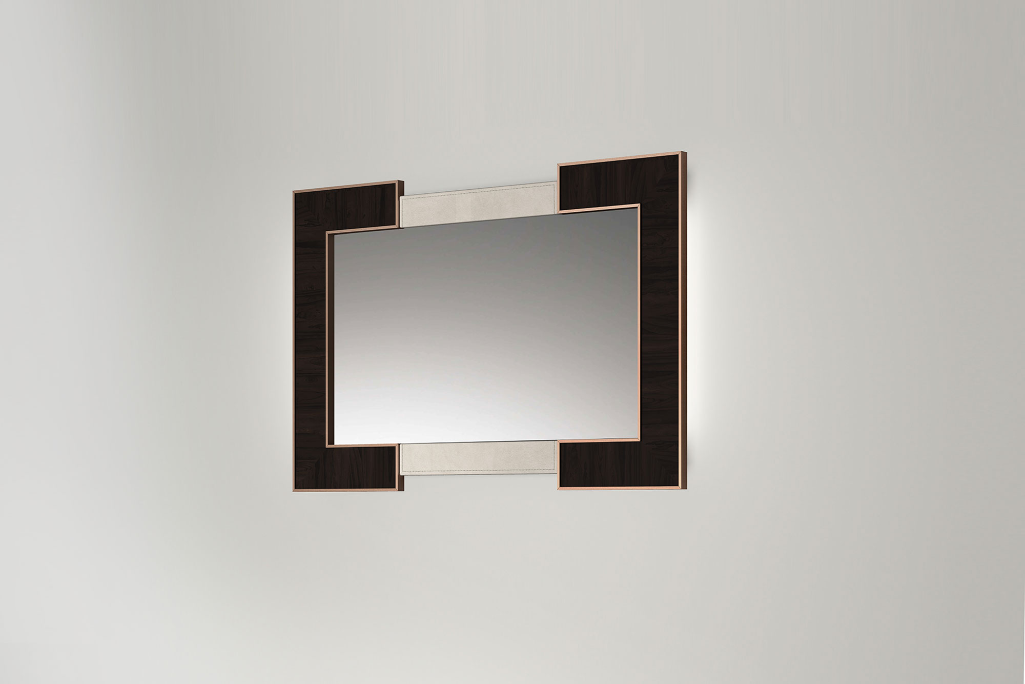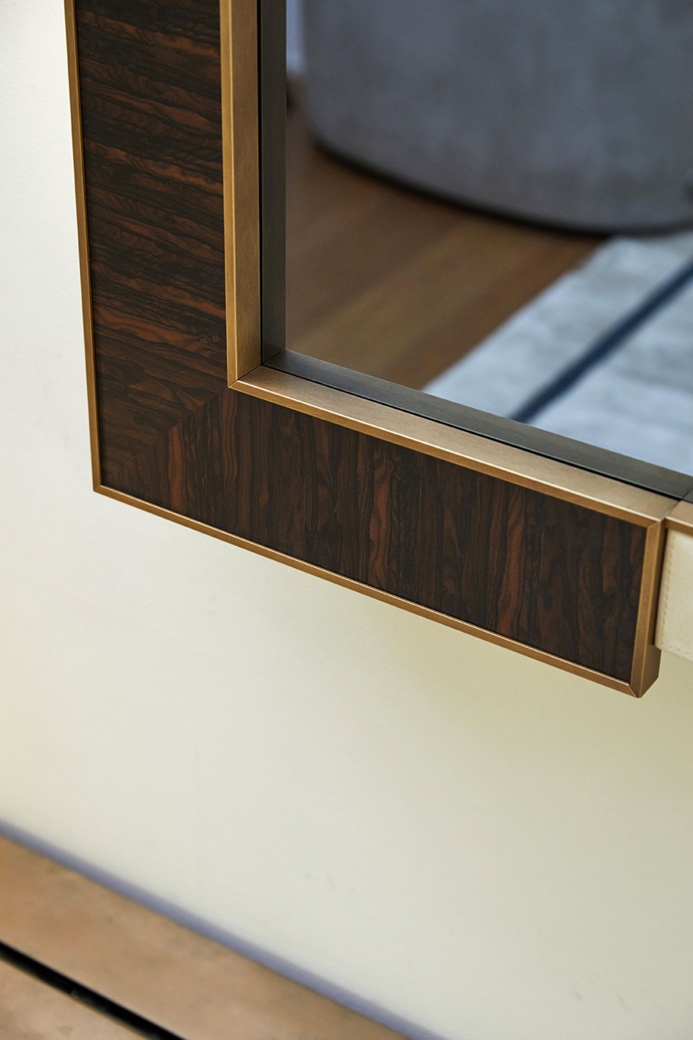 Chain è una collezione contraddistinta da linee sobrie e austere e da una combinazione di materiali nobili ed evocativi, quali il legno e il metallo. La caratteristica forma a doppia C viene esaltata dall’utilizzo del legno di Ziricote posizionato con le venature trasversali, per ricreare un effetto “passe-partout”. Un netto profilo metallico con finitura bronzo ne delimita il perimetro e, attraverso la fusione con gli elementi orizzontali in pelle nabuk, crea il perfetto connubio tra eleganza e modernità.