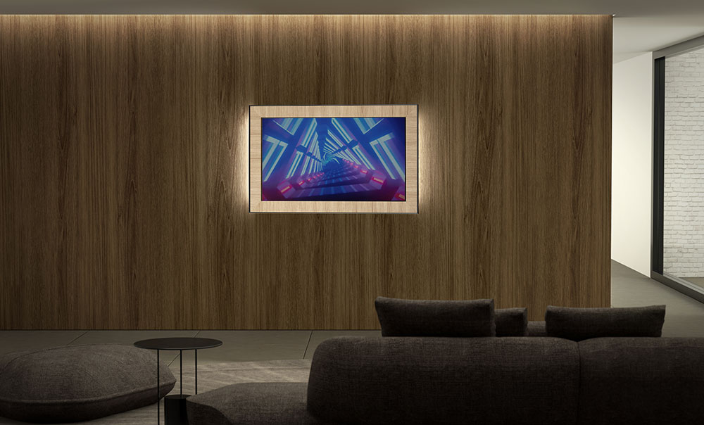 • L'illuminazione d'ambiente dimmerabile, completa il prodotto. Questa funzione è fruibile sia a TV accesa per una più confortevole visione al buio, sia a TV spenta per esaltare l'estetica dello specchio.