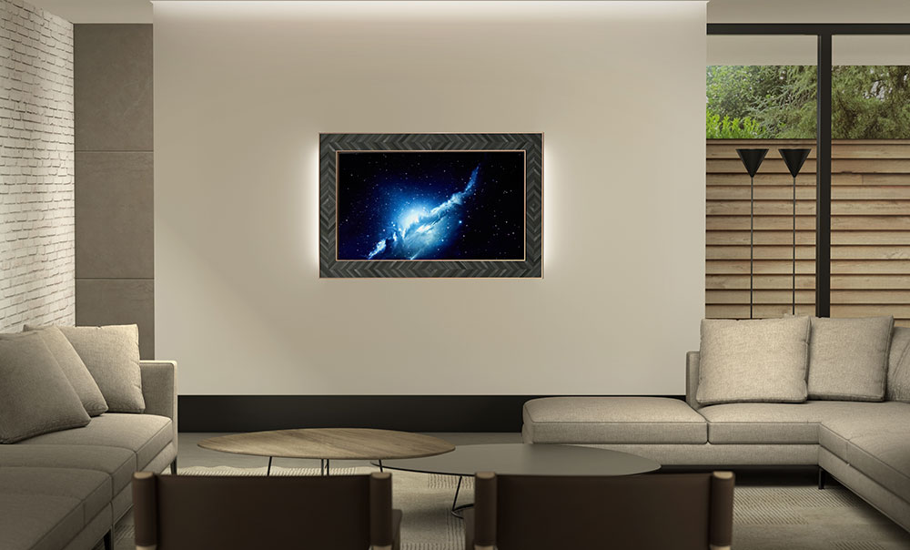 • La Smart TV integrata nel case, dispone di uno schermo 4K a tecnologia QLED avente risoluzione di 3840x2160 pixel, funzione HDR e una frequenza di aggiornamento di 120 Hz* (caratteristica disponibile per i modelli da 65" e 55").